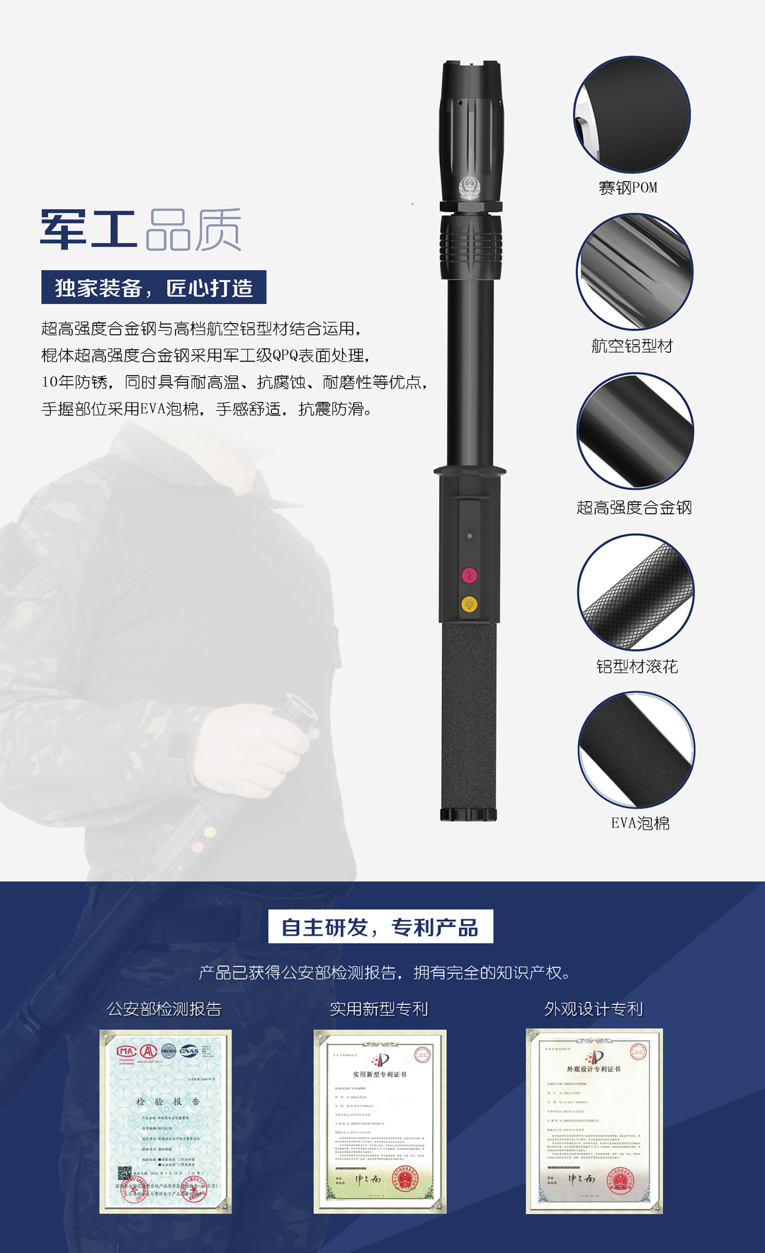 民盾安全自主研发出一款集电击、照明、防御功能于一体的新型电击防暴警棍,