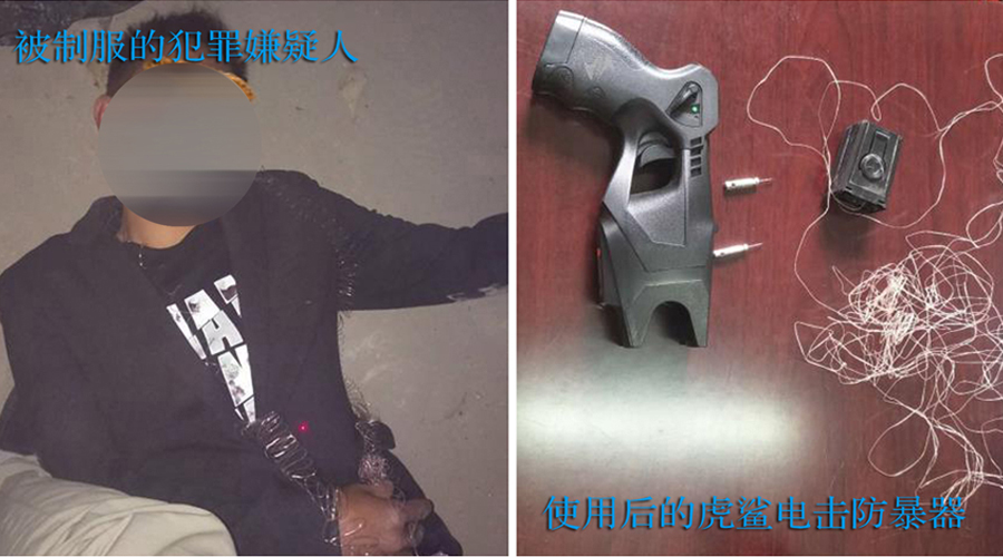 今年5月份,江西某市公安局在执行抓捕任务时,一个犯罪嫌疑人准备逃跑,执法人员果断利用虎鲨电击枪中目标,犯罪嫌疑犯立马丧失了活动能力直接倒地被制服。