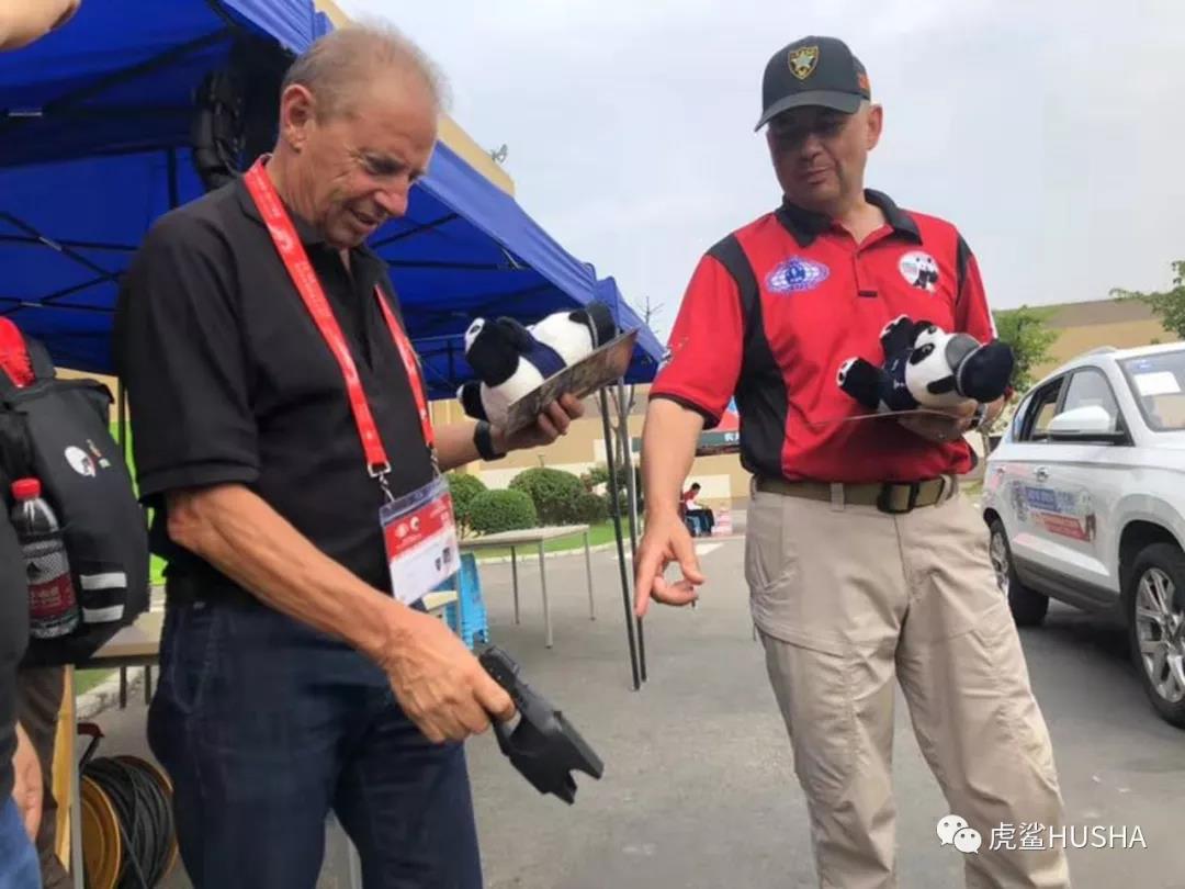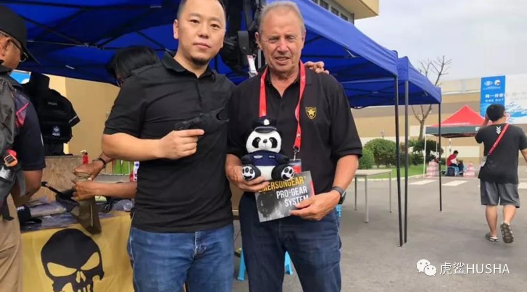 国际实用射击协会主席-阿兰.乔利先生体验虎鲨电击防暴器,经过试用和了解阿兰先生对于虎鲨这款抓捕型制服装备给予了很高