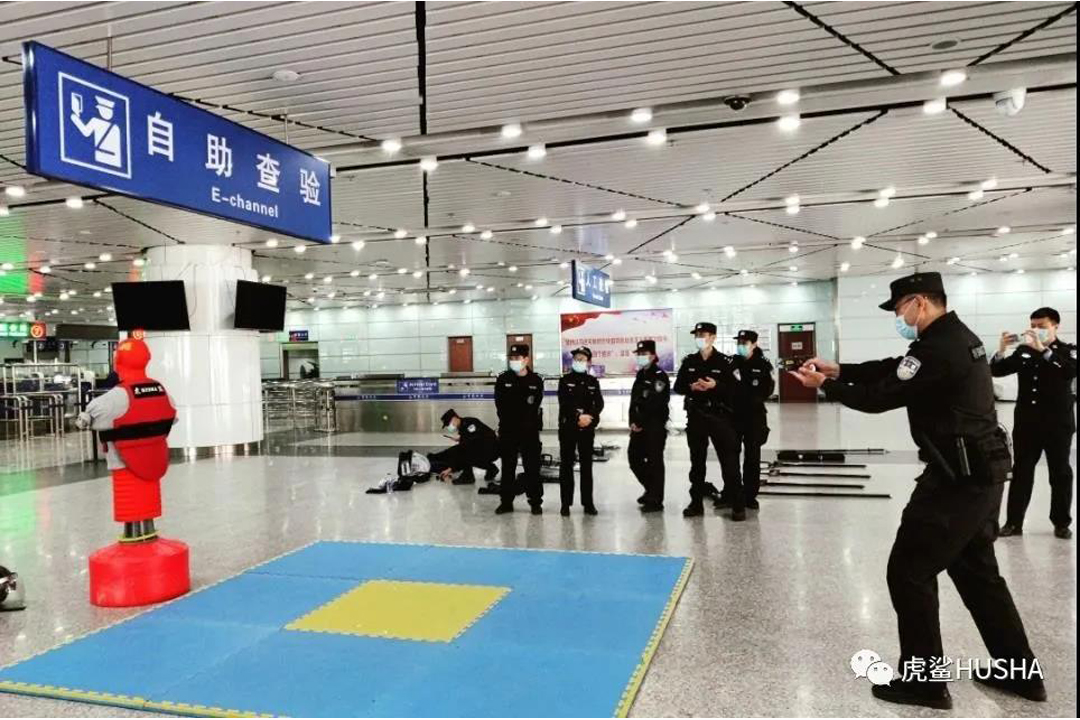 在拱北站党委的坚强领导下, 始终坚持科技强警理念,作为新型非致命警械——虎鲨电击枪成为此次演练亮点,肋力提升处 突能力,深受用户认可! 工欲善其事,必先利其器。此次集中培训以实战为导向,以警务实战理念贯穿培训始终,虎鲨培训教官为队员们详细讲解了 电击枪的设计原理以及使用方法,同时以体验式教学开展培训演示。 此次培训训练中,虎鲨枪体验环节组织有序、贴近实战,有效解决了实战中民警“该不该”、“敢不敢”、“会不会”使用电击枪 的问题,队伍处突战斗力得到进一步提升。