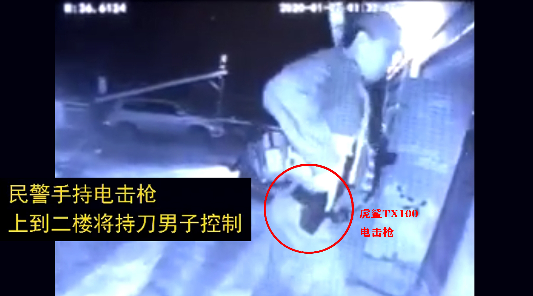 (贵阳民警使用虎鲨电击枪制服精神病肇事者 ↑)