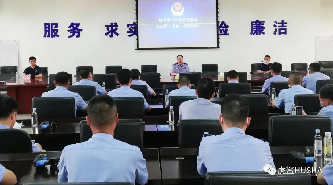 珠海市公安机关认真贯彻落实广东省公安厅党委和珠海市公安局党委的工作部署,聚焦基层一线执法执勤实际,采取多项措施强化战时练兵,着力提升民警辅警的实战能力,6月10日开展新型警械电击器(虎鲨)的配发使用培训,来自基层所队的50多名民警参加了此次学习培训。