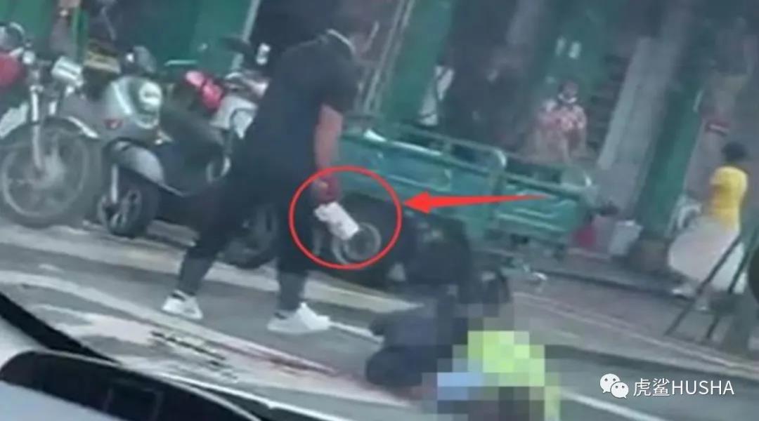 左手臂盾,右手甩棍,辅警与持刀者英勇搏斗并摔倒,被对方接连捅刺,幸得身边多名群众见义勇为,起身逃离!随后肇事男子坐在路边,数名警员在其身
