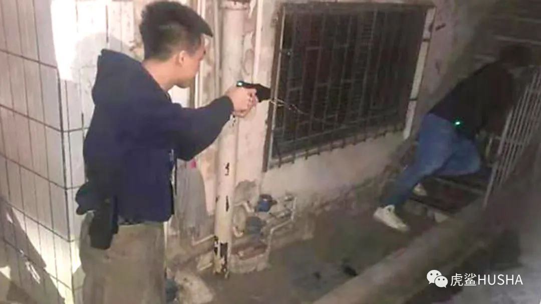 ▲广东惠阳办案民警利用虎鲨瞬间抓捕盗窃嫌犯