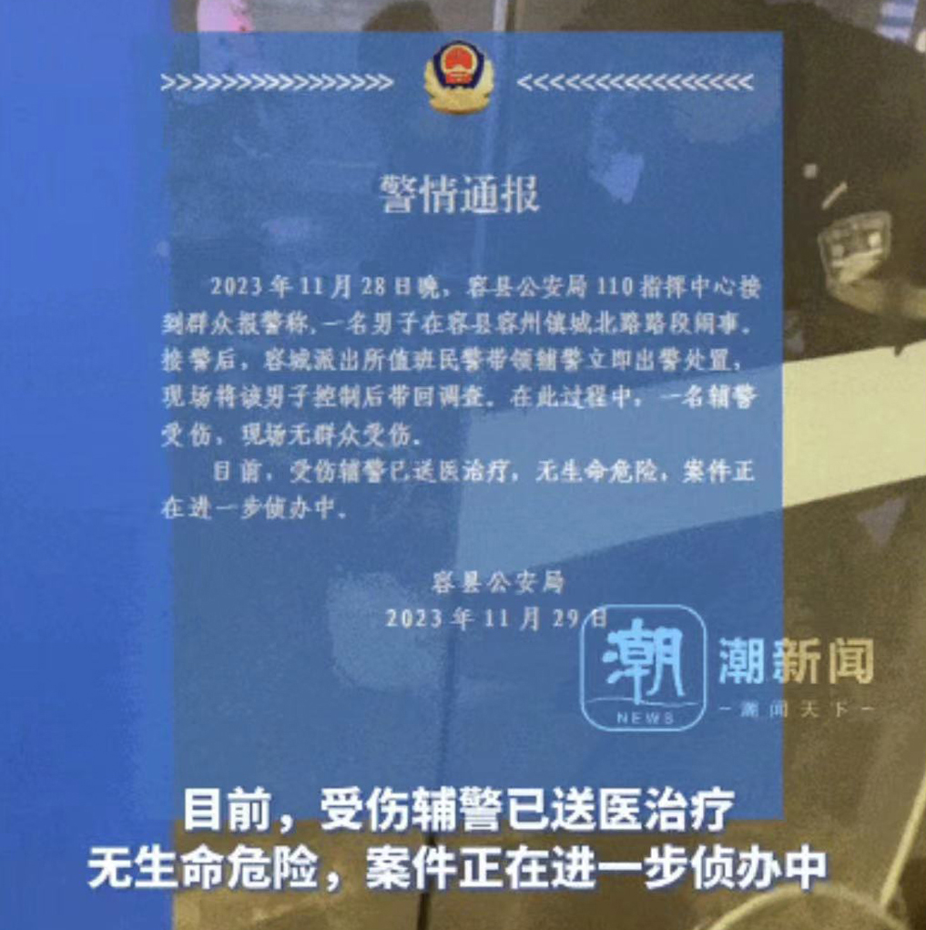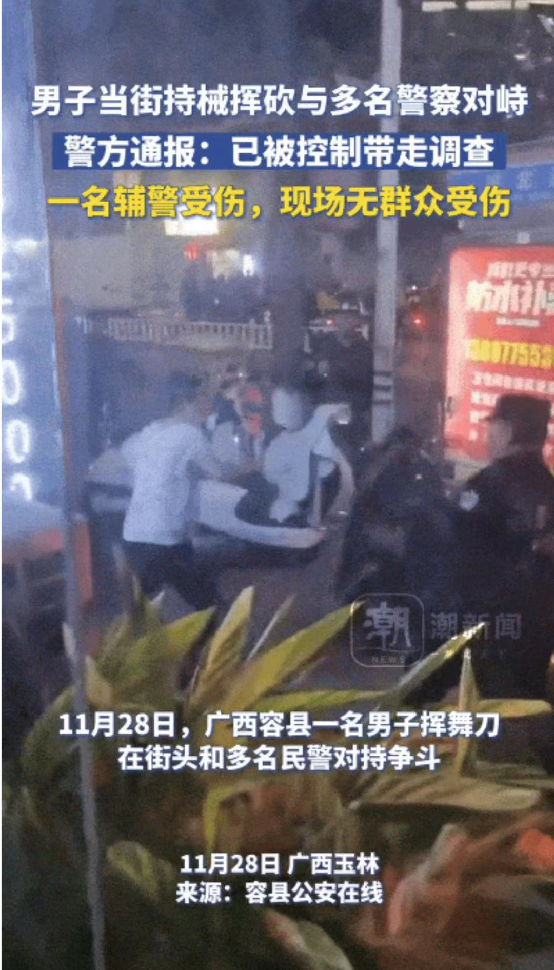 盾牌及长矛等警械才将男子制伏。随后11月29日凌晨,广西容县公安局发布警情通报。